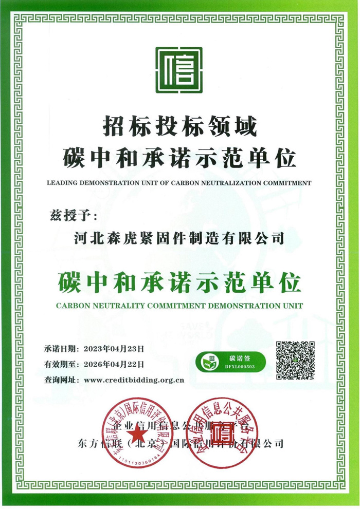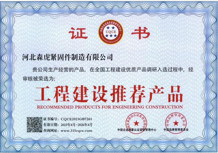 河北森虎緊固件制造有限公司成立于2011年,是建廠較早的緊固件企業(yè)。西臨京廣線,東臨京深高速,地理位置優(yōu)越,交通便利。 主要生產(chǎn):化學(xué)錨栓、機(jī)械錨栓、定型化學(xué)錨栓、高強(qiáng)度8.8級(jí)化學(xué)錨栓、自切底機(jī)械錨栓、車修壁虎,膨脹螺栓,植筋膠。 質(zhì)量方針:先進(jìn)技術(shù)、科學(xué)管理、優(yōu)良品質(zhì)、用戶滿意; ...資質(zhì)榮譽(yù)